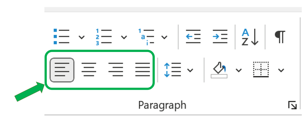 Look for the alignment options symbol below (from Word) in any editing toolbar. Speaking of Word, use CTRL-L (Windows) or CMD-L (Mac).